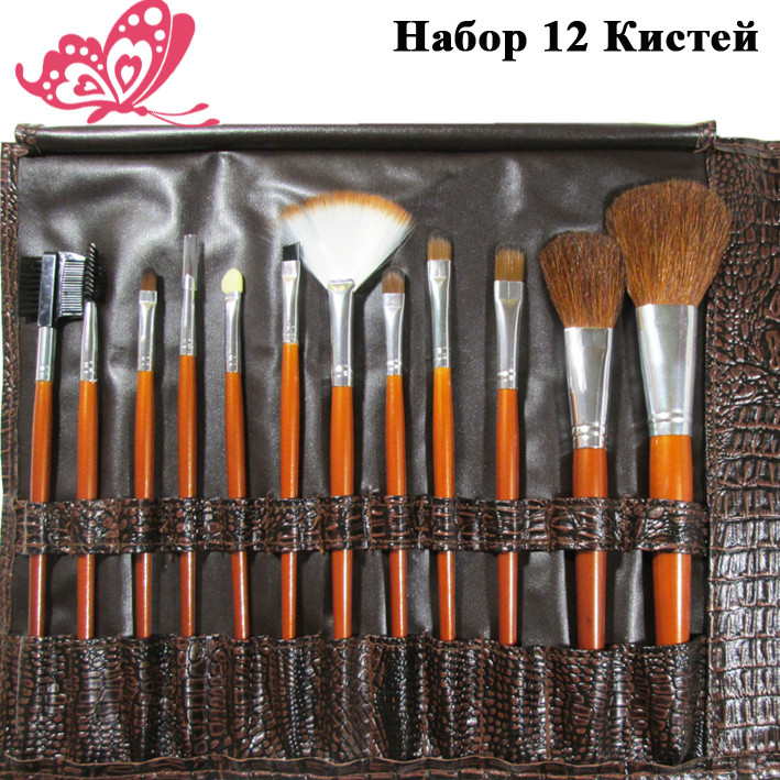 Новое Поступление: Набор Кистей Косметических Профессиональных для Макияжа Коричневый, 12 шт.